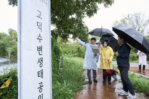 ▲ 10월 13일 이수희 강동구청장(왼쪽에서 두번째)이 고덕수변생태공원 현장을 점검하고 있다 |