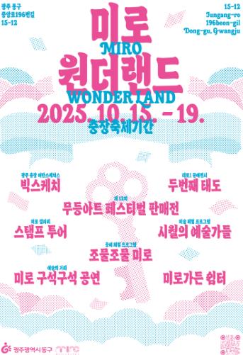 광주 동구는 오는 15일부터 19일까지 열리는 ‘제22회 광주 추억의 충장축제’ 개최 기간 동안 미로센터와 예술의 거리에서 시민 참여형 예술축제 ‘미로 원더랜드’를 개최한다고 밝혔다.