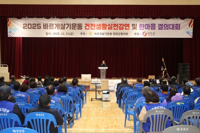 바르게살기운동 영양군협의회(회장 안형욱)는 11월 21일(금) 영양군민회관에서 회원 250여 명이 참석한 가운데 2025년 바르게살기운동 건전생활실천 강연회 및 한마음 결의대회를 성황리에 개최했다.