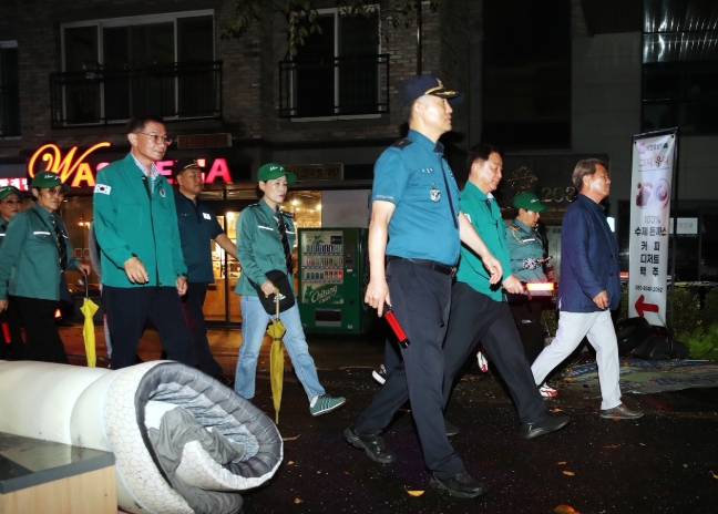 ▲ 서철모 서구청장은 25일 저녁 정림동 민·관·경 합동 야간 순찰에 참여했다. |