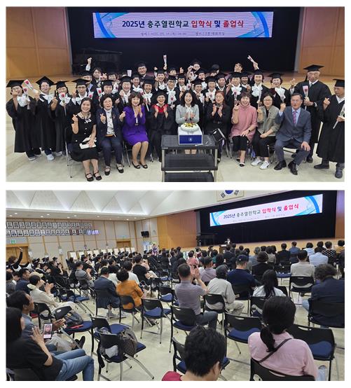 충주열린학교는 25일, 충주시청 탄금홀에서 2025학년도 입학식 및 고등학력 졸업식을 성황리에 개최했다.