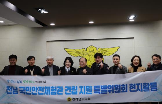 전라남도의회 ‘전남 국민안전체험관 건립 지원 특별위원회(위원장 강정일, 광양2)’는 지난 2월 5일 국민안전체험관 추진상황을 보고 받고 신축부지 현장을 방문했다.