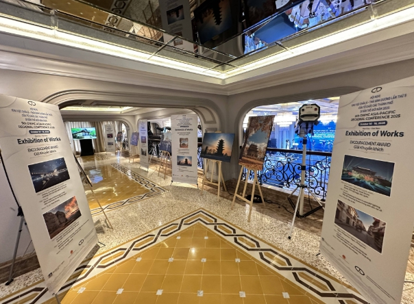 | ▲ 경주시 세계유산도시기구 아·태지역사무처가 베트남 후에시에서 열린 ‘제5차 세계유산도시기구 아·태지역총회’ 기간 중 ‘2025 OWHC-AP 세계유산도시 콘텐츠 공모전’ 수상작 전시회를 열고 있다. |
