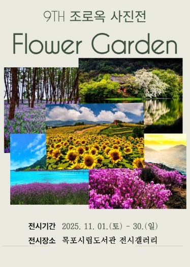 목포시립도서관 전시갤러리에서는 지난 11월 1일부터 30일까지 조로옥 사진전 ‘플라워 가든(Flower Garden)’을 개최한다.