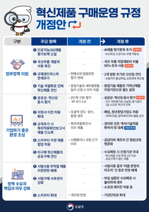 조달청, 2월 3일부터 '혁신제품 구매 운영 규정' 개정 시행…공공분야 혁신조달 확대