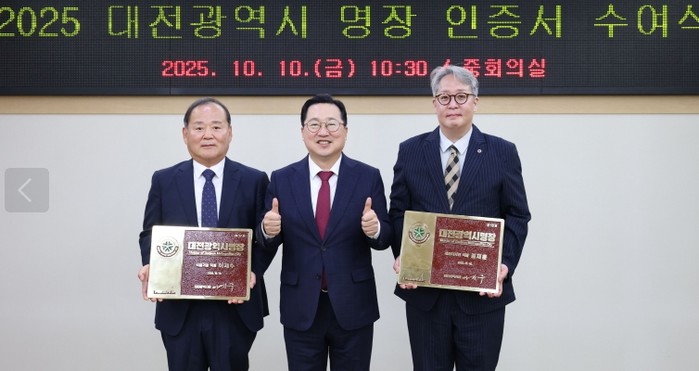 대전시는 10일 시청 중회의실에서 2025년‘대전광역시 명장’으로 선정된 2명에게 인증서와 인증패를 수여했다.