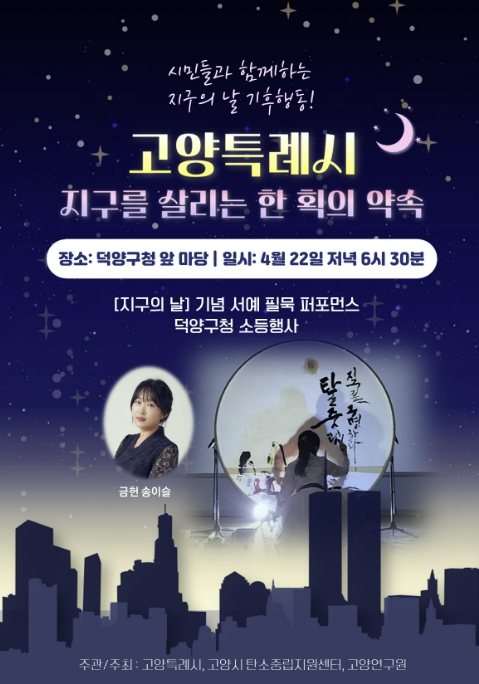 고양시 환경정책과가 주관하고 고양시 탄소중립 지원센터가 주최하는 부대행사에서는 금헌 송이슬 작가의 ‘지구의 날 기념 서예 필묵 퍼포먼스’가 펼쳐져, 지구를 살리는 약속을 한 획의 예술로 담아낼 예정이다. 퍼포먼스 이후에는 덕양구청 청사를 일제히 소등하는 기념식이 이어진다.