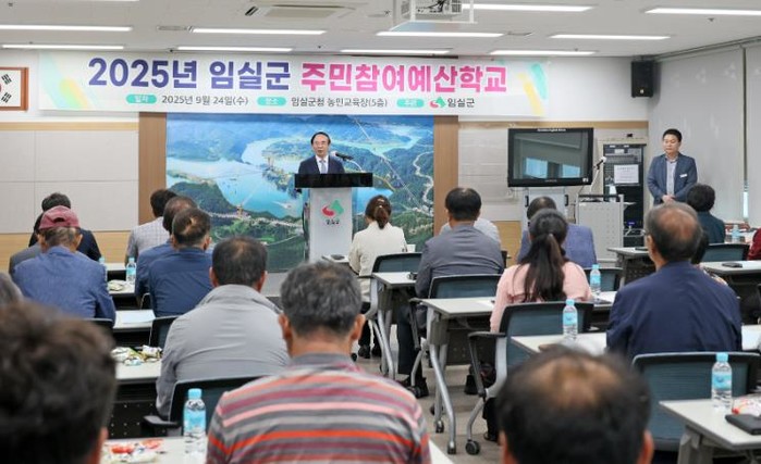 임실군이 지난 24일 주민참여예산제도와 예산 운용 전반에 대한 주민들의 이해도 향상과 참여위원들의 역량 강화를 위해 주민참여예산위원 30여 명이 참석한 가운데‘2025년 임실군 주민참여 예산학교’를 개최했다.