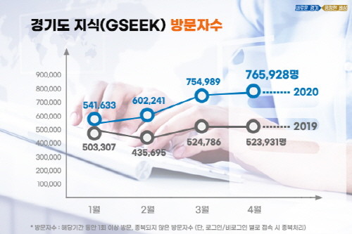 26일 경기도에 따르면 지식(GSEEK)의 콘텐츠 이용량은 올해 1월 133만90건, 2월 116만9,253건, 3월 191만2,771건을 기록했으며, 4월은 294만4,431건으로 1.2.3월 대비 4월 조회 수가 2배에 이른다.