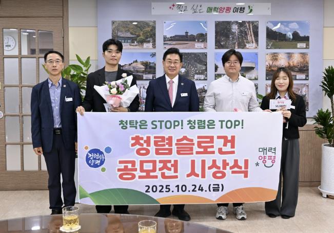 양평군은 지난 24일 ‘2025 청렴 슬로건 시상식’을 개최하고, 공정하고 투명한 공직문화 확산을 위해 추진한 ‘청렴 슬로건 공모전’의 수상작을 발표했다.