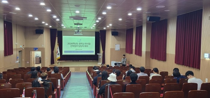 당진교육지원청은 23일 당진 관내 초등학교 6학년 교사를 대상으로 2026학년도 중학교 무시험 진학업무 담당자 회의를 개최했다.