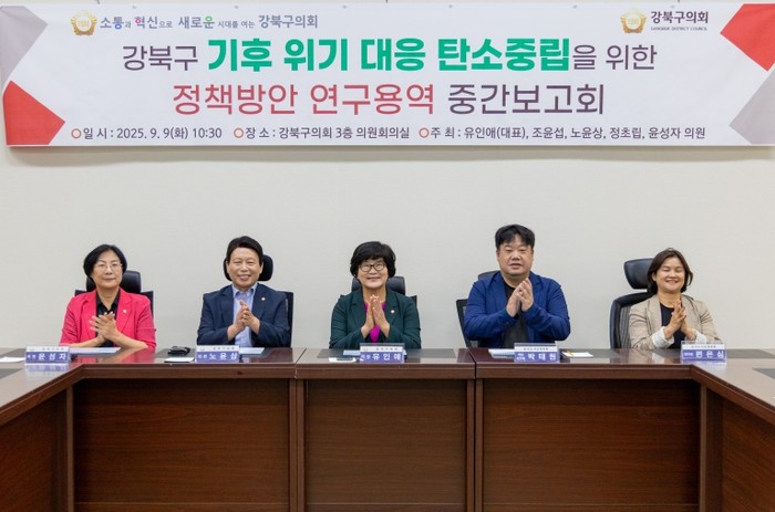 강북구의회 의원연구단체인 ‘강북구 기후위기 대응 탄소중립을 위한 연구회’ (대표의원 유인애)는 지난 9월 9일 의회 3층 의원회의실에서 중간보고회를 열었다.
