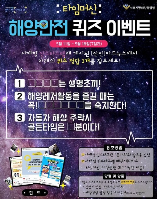 서해해경은 오는 18일을 기한으로 ‘타임머신! 해양안전 퀴즈’ 이벤트를 진행하고 있다.