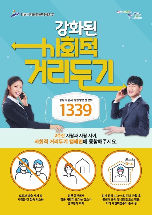 안산시(시장 윤화섭)는 코로나바이러스감염증-19(코로나19) 확산 예방과 극복을 위한 정부의 강화된 사회적 거리두기 운동에 관내 식품위생업소의 적극적인 동참을 호소한다고 1일 밝혔다.
