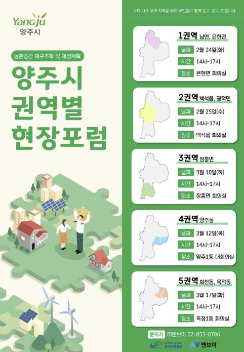 양주시가 오는 24일부터 3월 17일까지 5차례에 걸쳐 ‘농촌공간 재구조화 및 재생 기본계획’ 수립을 위한 권역별 주민현장포럼을 개최할 예정이다.