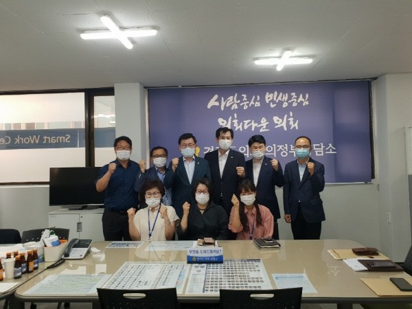 경기도의회 의정부상담소에서 지난 18일 의정부지역 최경자(의정부1, 민주), 이영봉(의정부2, 민주), 권재형(의정부3, 민주), 김원기(의정부4, 민주)의원은 의정부시청 기획예산과, 체육과 관계공무원과 2020년도 하반기 특별조정교부금 교부 현황과 사업개요, 의정부실내체육관 시설 보수 계획안 등에 대해 설명을 듣고 현안 사항을 논의하는 자리를 가졌다.