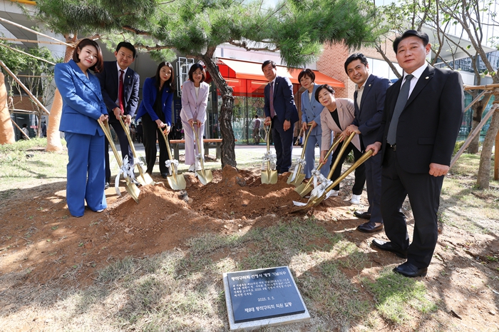 ▲ 정재천 의장과 이지희 부의장, 복지건설위원회 위원들이 기념식수 하는 모습 |