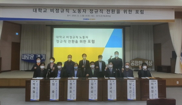 지난 11월 2일(월) 오후 2시, 경기도청 신관 회의실에서는 경기도의회 경제노동위원회와 경기도 노동국 공동주최로 ‘대학교 비정규직 노동자 정규직 전환을 위한 포럼’이 개최됐다.