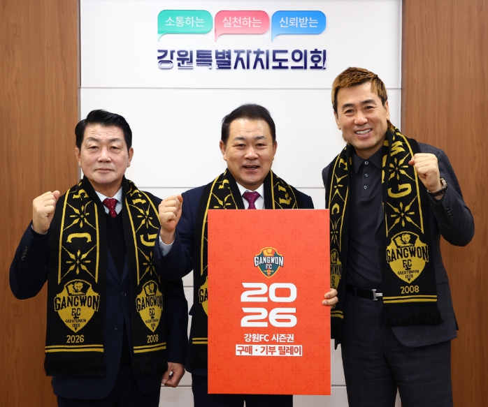 강원특별자치도의회는 2026년 강원FC의 선전과 도내 축구 열기 확산을 위해 ‘시즌권 구매-기부 릴레이’에 동참한다.