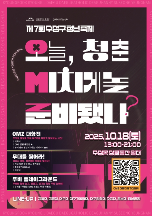 대구 수성구는 오는 18일 수성못 상화동산 일대에서 ‘2025 제7회 수성구 청년축제’를 개최한다.