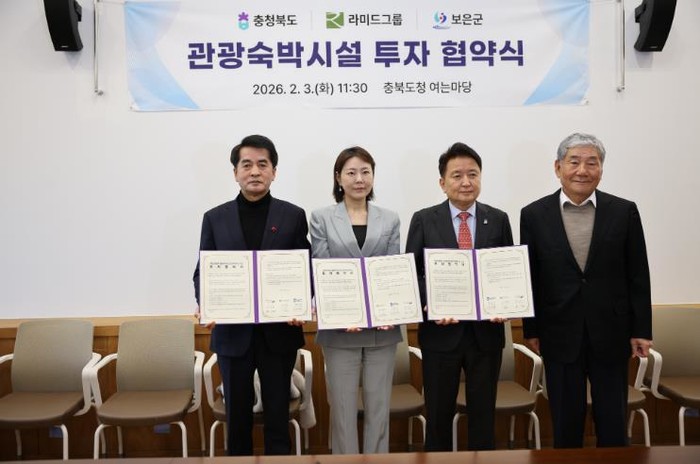 충북 보은군은 3일 충북도청 여는마당에서 충청북도·라미드관광㈜과 ‘구병산관광지 관광숙박시설 및 부대시설 조성사업’을 위한 투자협약(MOU)을 체결했다.