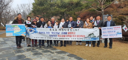 독도향우회 경기도지회(지회장 정대운)는 22일 광명동굴 평화의 소녀상 앞에서 일본의 독도침탈 행위를 강력히 규탄했다. 이날 규탄대회에는 독도향우회 경기도지회 정대운 회장, 한주원(광명시의원), 장상식, 손대호 부회장, 김영일 자문위원장, 이진영 운영위원장, 이신우 조직위원장, 오정옥 홍보위원장, 이일규(광명시의원) 사무국장 및 지회 회원들이 참석했다.