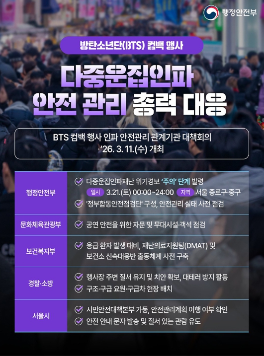 행정안전부, BTS 컴백 행사, 안전 관리 총력 대응!