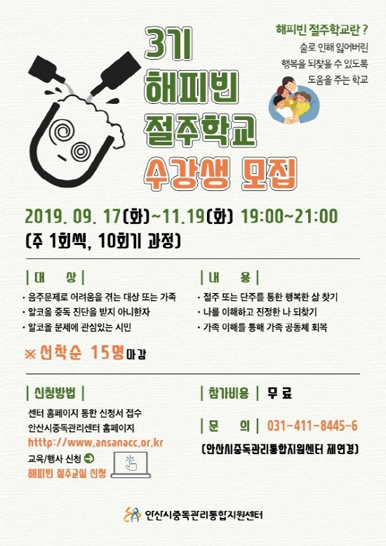 안산시, ‘제3기 해피빈 절주학교’ 수강생 모집