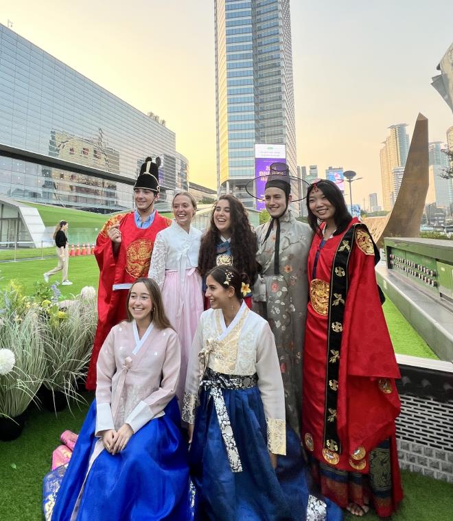 ▲ 지난해 강남메디투어페스타에서 한복 체험을 하는 외국인들 |
