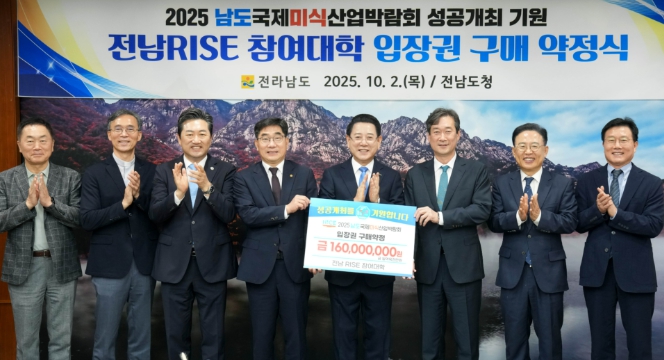 전라남도는 2일 도청 접견실에서 전남RISE 참여대학 총장단과 함께 ‘2025 남도국제미식산업박람회 입장권 구매 약정식’을 개최했다.