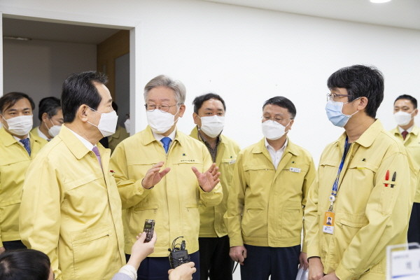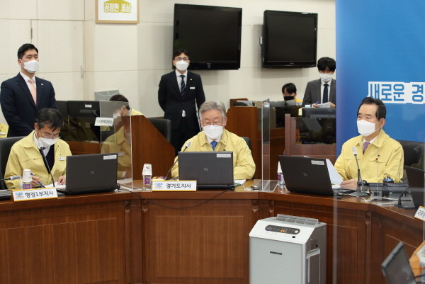 앞서, 이재명 지사는 이날 오전 9시부터 정세균 총리 주재로 열린 코로나19 관련 중앙재난안전대책본부(중재본) 회의에 참석해 코로나19 감염확산 대응 방안을 논의했다.