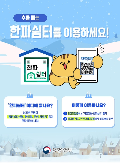 행정안전부, 추울 때는 한파쉼터를 이용하세요!