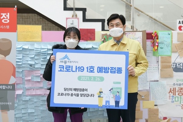 세종시의 코로나19 백신 1호 접종자는 20대 요양병원 간호사 이하현 씨로 본인동의하에 접종을 시작한다.