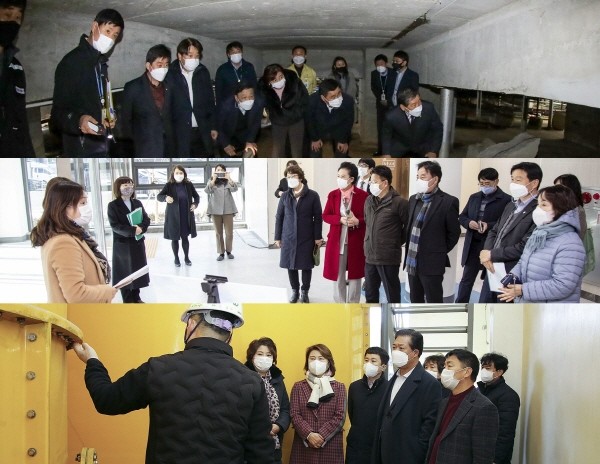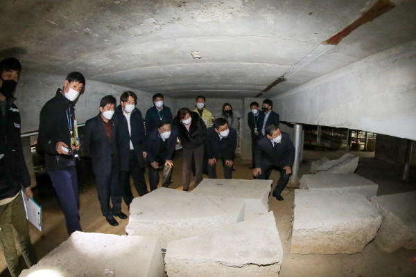 현장에서 시 회계과 관계자들의 안내에 따라 민원동 지하까지 이동한 위원들은 구조물의 상태에 대해 집행부 측의 설명을 듣고 안전진단 결과와 부합하는지, 예산 수립 규모는 적절한지 등을 살폈다.