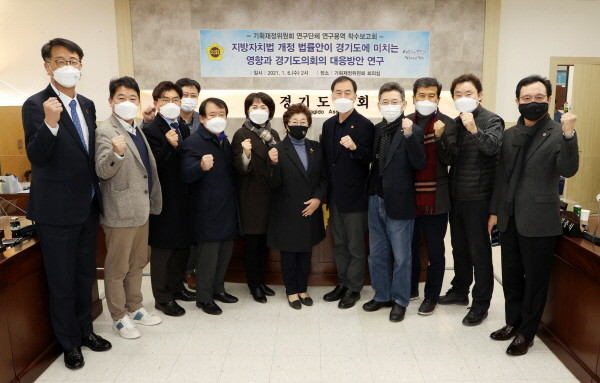 [프레스뉴스] 김대일 기자= 「기획재정위원회 연구단체」(회장 심규순 위원장)는 1월 6일(수) 경기도의회 기획재정위원회 회의실에서 「지방자치법 개정 법률안이 경기도에 미치는 영향과 경기도의회의 대응방안 연구」에 대한 정책연구용역 착수보고회를 개최했다.