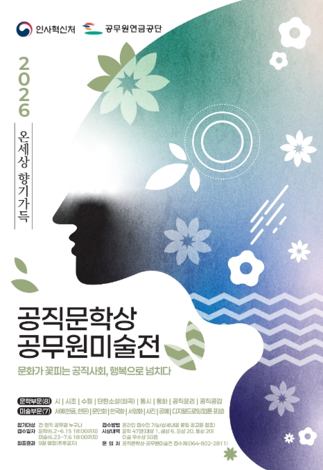 인사혁신처와 공무원연금공단은 공무원들의 예술적 끼와 재능을 마음껏 펼치는 ‘2026년 공무원 예술대전’의 분야별 작품 공모 일정을 6일 발표했다.