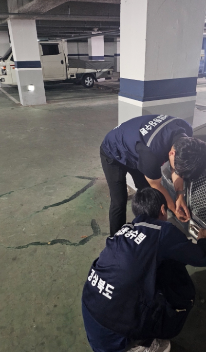 ▲ 경상북도 체납합동징수팀의 체납차량 번호판 영치활동 모습 |
