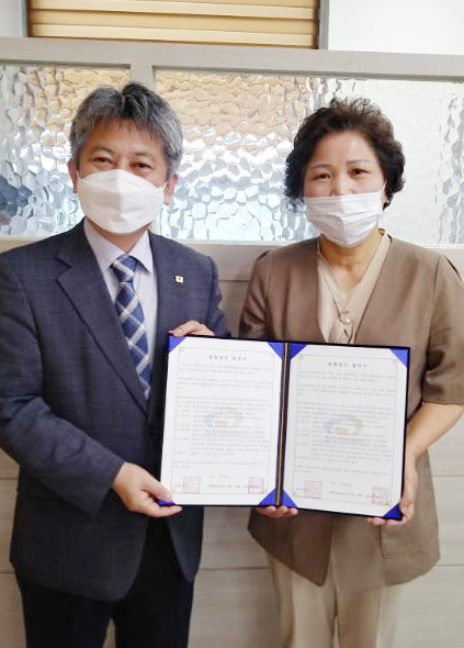 | ▲ 대한적십자사 대전세종충남 혈액원 손일수 원장(왼쪽)과 구본순 동남구보건소장(오른쪽)이 23일 헌혈자 지원을 위한 업무 협약을 체결하고 기념 사진을 촬영하고 있다. |