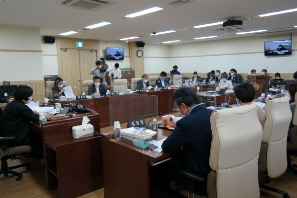 2일 진행된 경제노동위원회는 코로나19 확산 방지를 위해 시급성을 요하는 안건으로만 최소화함은 물론이고, 참석 관계 공무원 최소화, 참석자 발열체크 및 좌석 간 거리두기 등 철저한 방역조치 중 진행되었다.