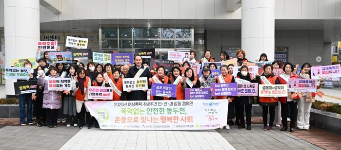 이번 캠페인은 ‘폭력 없는 안전한 동두천, 존중으로 빛나는 행복한 사회’를 슬로건으로 시민 인식 개선과 실천 확산을 위해 마련된 것으로, 동두천시·동두천경찰서·동두천시여성단체협의회·동두천시가족센터·동두천성폭력상담소 등 40여 명이 참여했다.