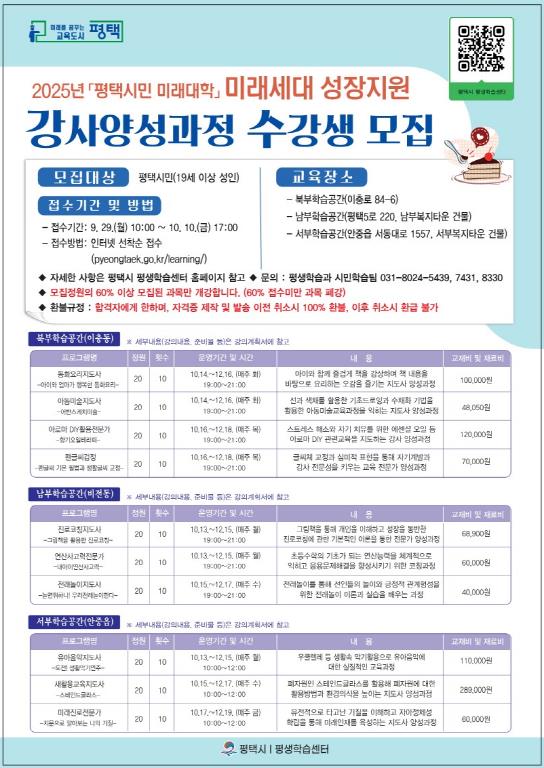 평택시, '2025년 평택시민 미래대학' '미래세대 성장지원 강사' 10주 과정 개설