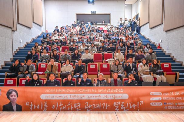 양평군학교밖청소년지원센터 꿈드림은 지난 26일 오후 4시, 양평문화재단 씨어터공연장 2층에서 ‘2025년 성과 공유회 및 명사특강’을 개최했다. 이날 행사에는 100명 이상이 참석해 뜨거운 관심 속에 성황리에 마무리됐다.