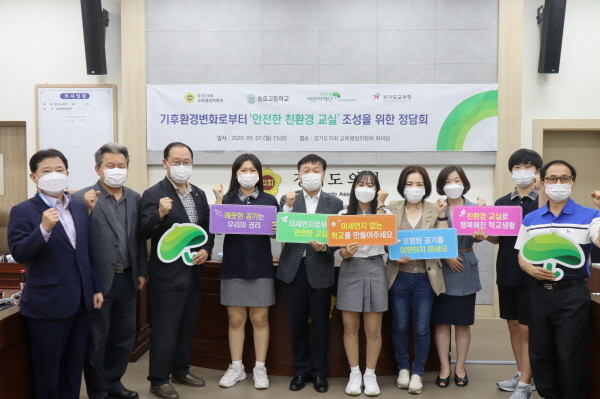 경기도의회 교육행정위원회(위원장 남종섭)는 갈수록 심해지는 미세먼지로부터 학생들의 건강권 보장 방안을 논의하고자 7일 초록우산어린이재단 경기아동옹호센터와 함께 ‘기후환경변화로부터 안전한 친환경교실 조성을 위한 정담회’를 개최하였다.