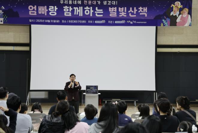 박강수 마포구청장은 10월 31일 저녁 7시, 마포365구민센터 내 마포365천문대에서 열린 ‘엄빠랑 함께하는 별빛산책’ 행사에 참석해 마포구민들과 특별한 가을밤을 보냈다.