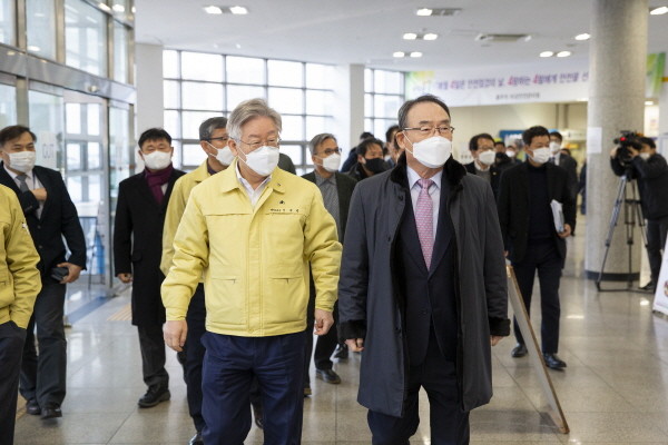 이재명 지사는 14일 코로나19 생활치료센터로 전환되는 수원 경기대학교 기숙사(경기드림타워)를 찾아 현장을 점검하고 김인규 경기대 총장과 만난 자리에서 이같이 밝혔다.