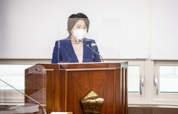| ▲ 김진숙 의원이 지난달 27일 열린 제267회 제2차 정례회 도시환경위원회에서 ‘안산시 공동주택관리 조례 일부개정조례안’의 취지에 대해 설명하고 있다. |