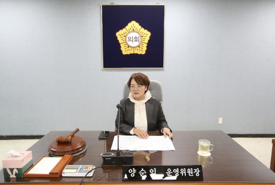| ▲ 양순임 운영위원장이 회의를 주재하고 있는 모습 |