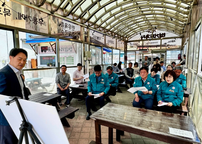 첫 방문지인 동쪽바다중앙시장에서는 문화관광형 시장 육성사업과 주말 야시장 공모사업의 사업내용 및 추진현황, 향후 계획 등을 청취하는 한편, 지역경제 활성화 및 관광 자원으로서의 시장 역할 강화 방안에 대해 함께 논의했다.