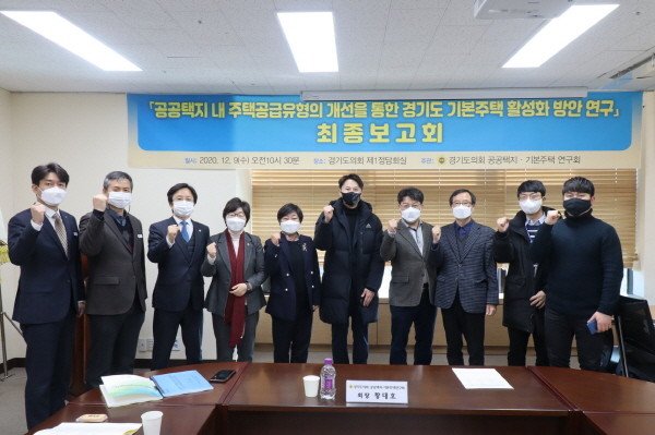 경기도의회 공공택지·기본주택연구회(회장 황대호 의원)는 9일 연구단체에서 진행 중인 ‘공공택지 내 주택공급유형의 개선을 통한 경기도 기본주택 활성화 방안 연구’에 대한 최종보고회를 개최하여 연구수행기관으로부터 경기도 기본주택 사업의 안정적인 정착을 위해 경기도와 경기도의회가 함께 고민하고 개선해 나가야 할 사항들에 대해 보고받는 자리를 가졌다.