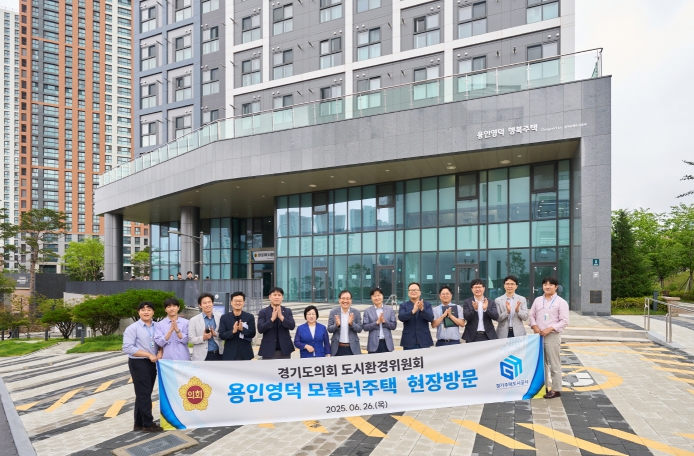 경기도의회 도시환경위원회는 26일 모듈러주택 우수사례 현장답사를 위해 용인시 기흥구에 위치한 “용인 영덕 경기행복주택”을 방문했다.